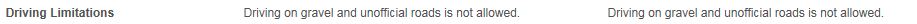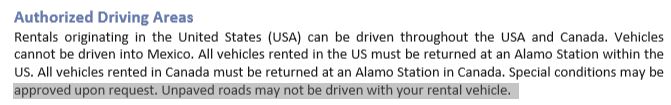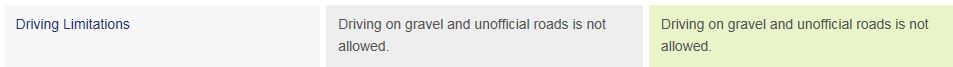 In mijn Alamo contract van 2013:M Kactus schreef: En het is niet verboden om dirtroads te rijden, maar je bent er niet op verzekerd.