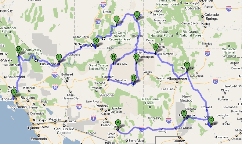 Ik denk dat het dan toch beter is om ons te richten op AZ, NM en Zuid-Utah. Waar ik me wel zorgen over maak is de afwisseling tijdens die drie steden, want veel stad zullen we denk ik niet krijgen.