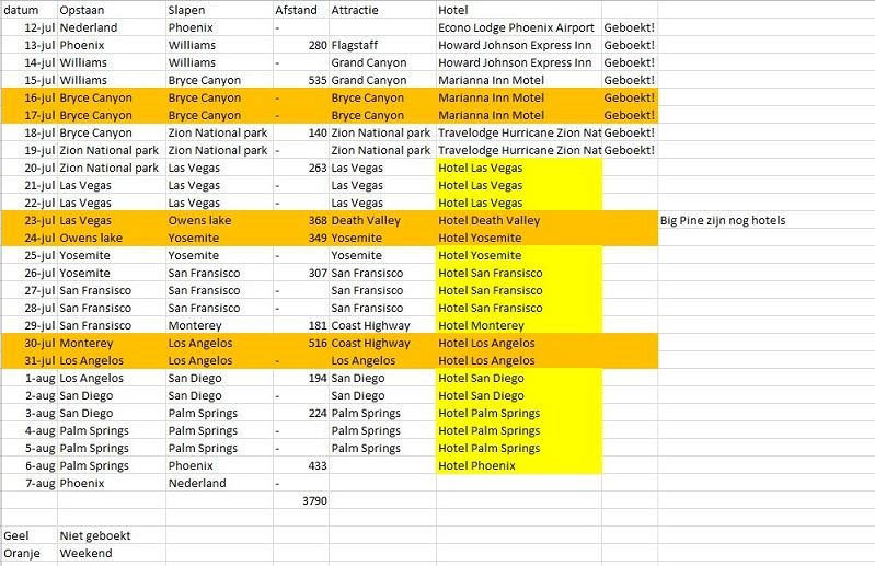 Ruim 3,5e week naar Amerika. Bijgevoegd ons reisschema. Ik ben benieuwd wat jullie ervan vinden. Uiteraard hebben we een auto gehuurd.