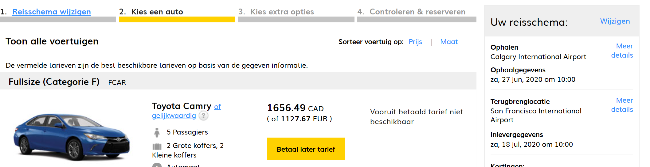 San Fransisco - Calgary lijkt niet te kunnen maar andersom wel (voorbeeld voor 3 weken huur bij Hertz start in Calgary en eindigen in San Fransisco.