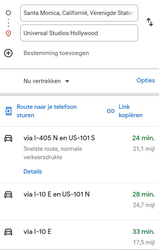 Ja, klopt, en dan doe je in LA deze Google maps tijd nog eens maal 1,5 en dan ben je op je bestemming… :lol: :lol: Ik kan je verzekeren dat die “vanaf tijd” nooit gehaald gaat worden tussen 05.00 en 22.00 uur, hooguit diep in de nacht… :D