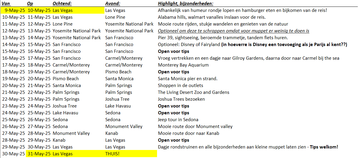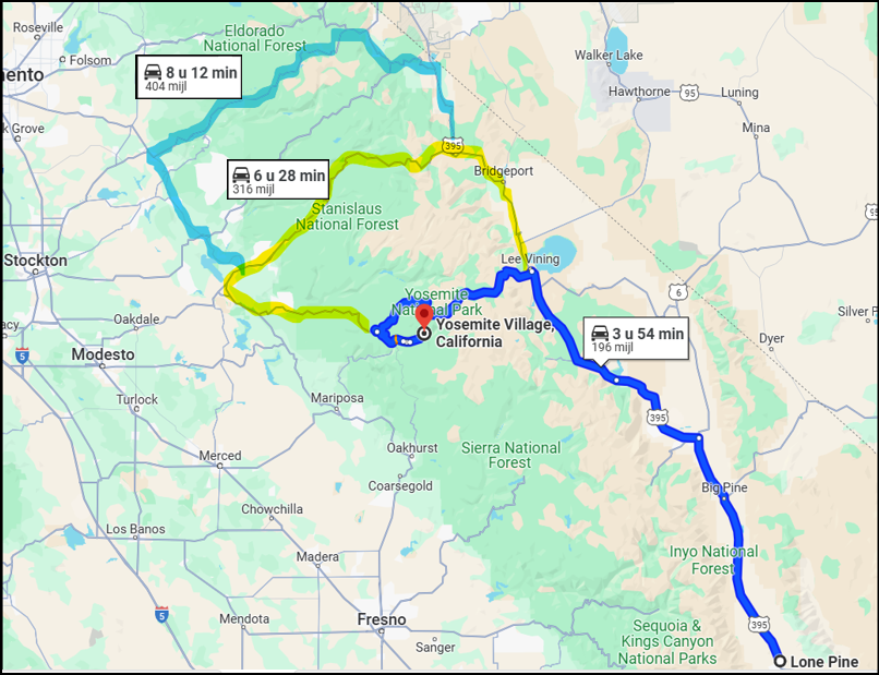 Ik ben wat verbaasd over de opmerking bij Yosemite; waarom zou daar weinig te doen zijn voor jullie dochter? Verder vind ik het begin nogal ambitieus; weinig tijd voor Death Valley en dan een lange rit naar Yosemite. Ik zou zeker ook tijd uittrekken voor de Alabama Hills. Hoe wil je rijden, onderlangs of via bijvoorbeeld de CA88?