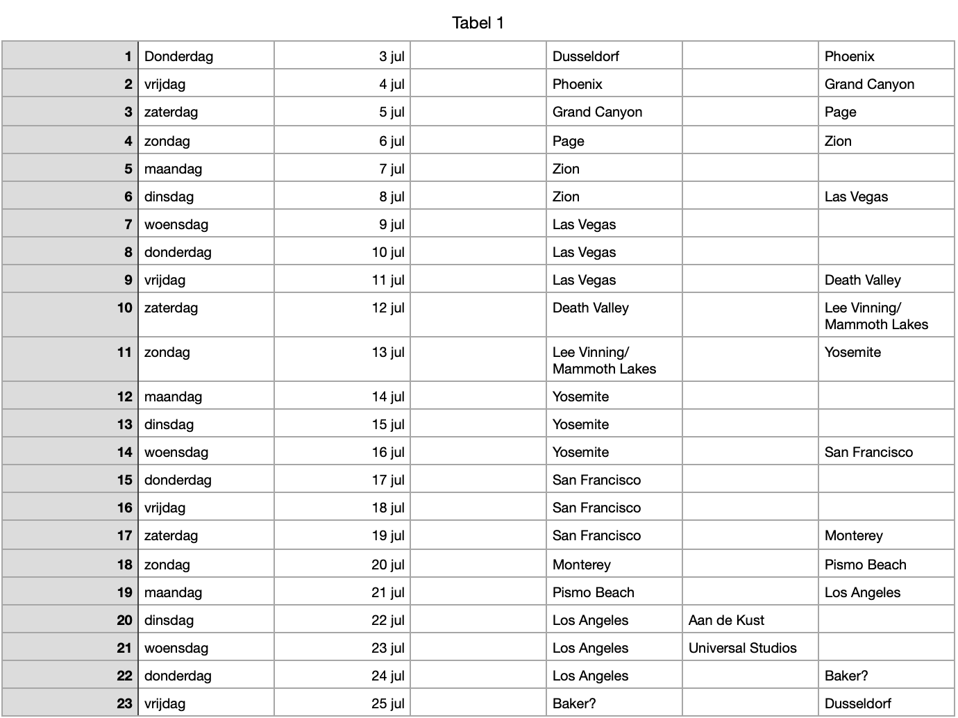 . Wij vliegen nu op 25 juli om 16.50u vanuit LAX naar DUS (via Amsterdam). Dit scheelt ons een ritje van LA naar LV aan het einde van de vakantie.
