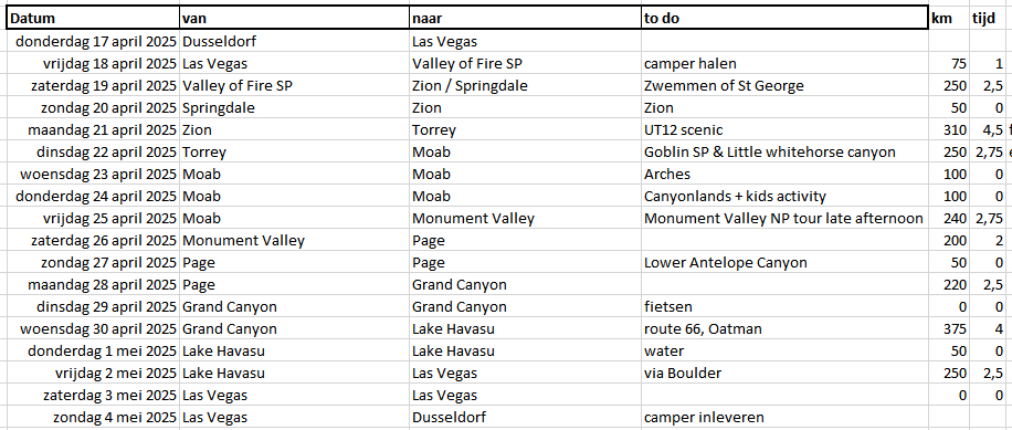 Is voor ons ook eerste keer met camper in de USA en we willen het rustig aan doen en ook beetje van de camper plekjes genieten (vuurtje, biertje, BBQ, hopelijk wat uitzicht en niet teveel haast).