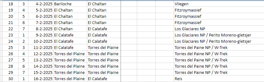 ). Moet alleen de laatste dag (de terugreis) er nog even in zetten.