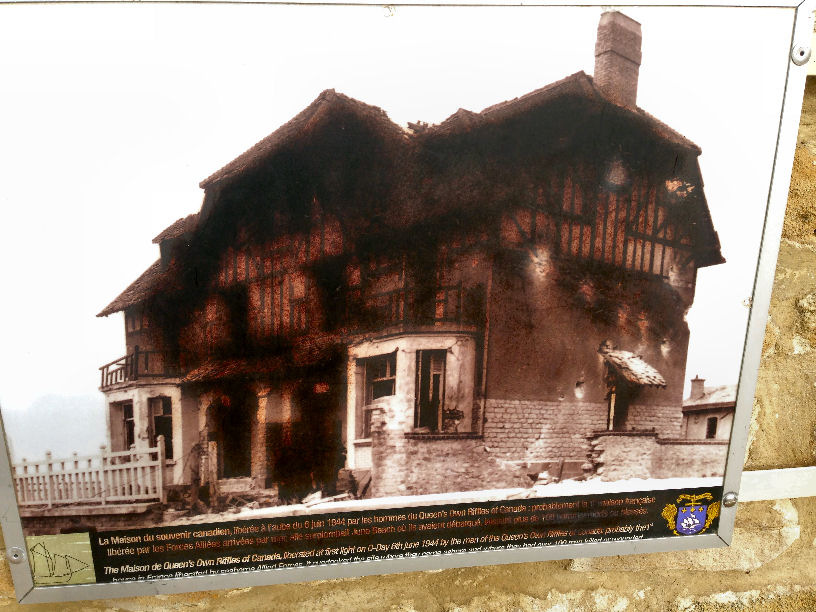 Eigenlijk heel het dorp Bernieres sur mer is gericht op de landingen van de Canadese divisie. Zoals bijvoorbeeld dit huis. Overal staan plaquettes en gedenktekens die herinneren aan de slag die hier heeft plaatsgevonden.