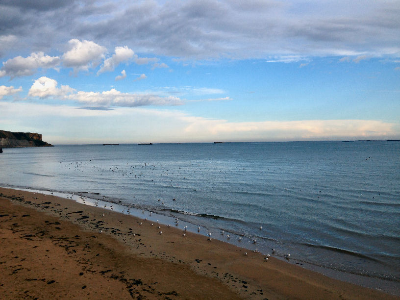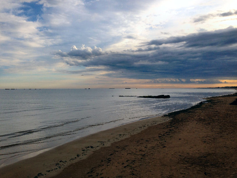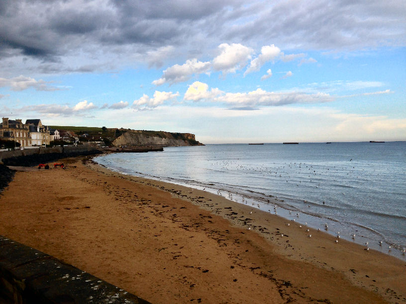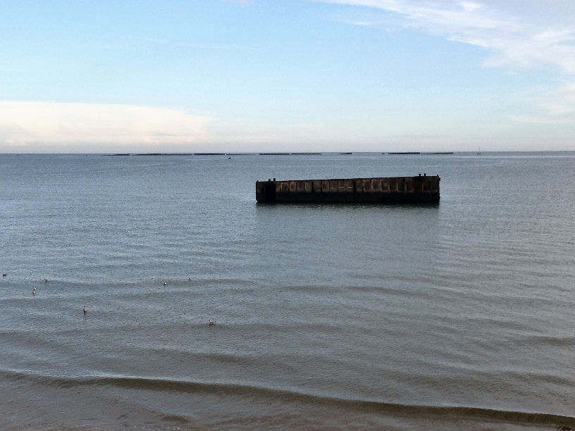 Vanaf Arromanches (Ga vooral ook naar Arromanches 360) zie je de Mulberry haven van toen nu nog liggen. Bij voorkeur bij Eb bezoeken, dan kun je er zelfs voor een deel gewoon langs lopen.
