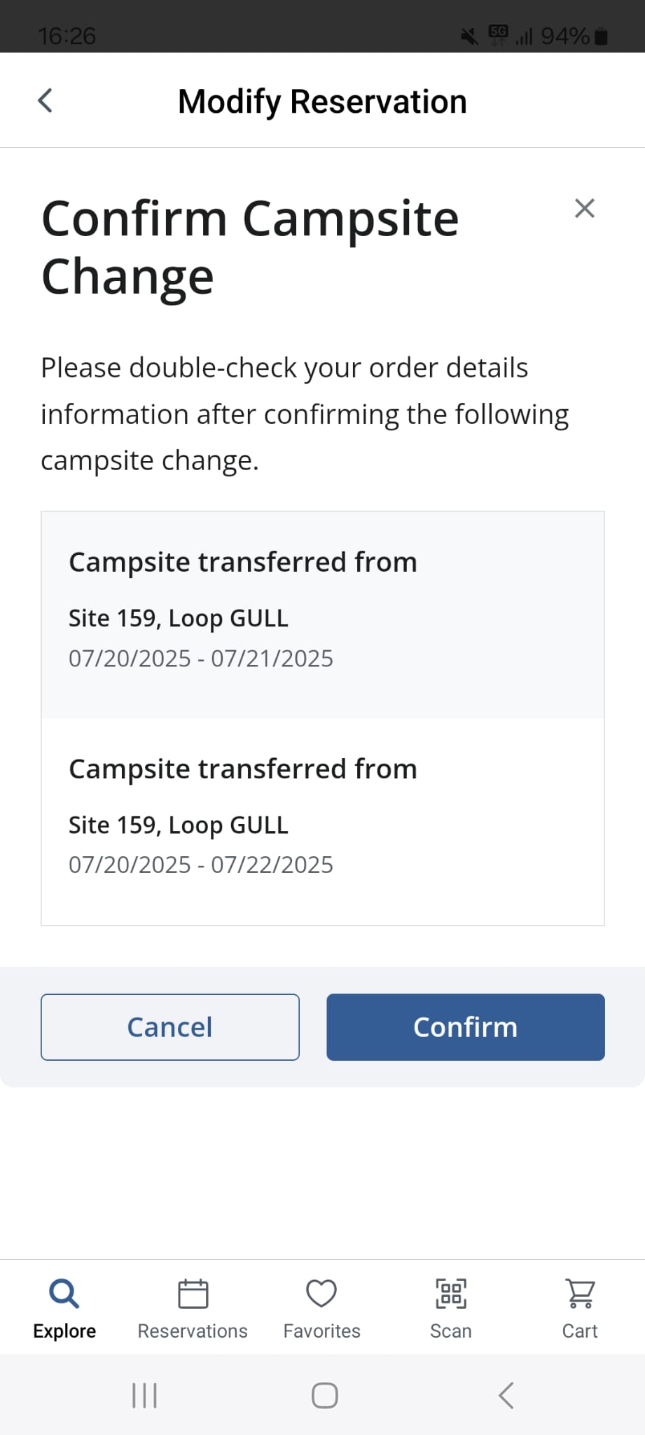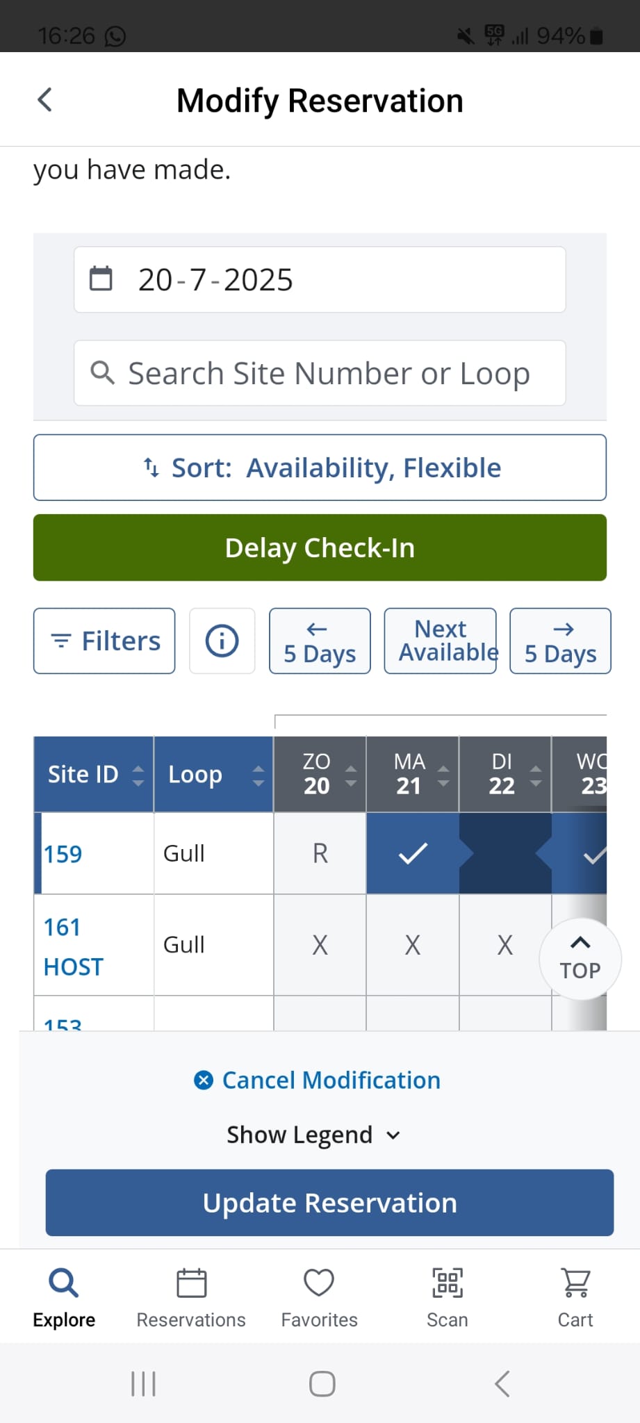 Vandaag zag ik bij Oh Rigde bij 21 juli op veel plekken op "A" staan; ik dacht nog dat is raar want het is vandaag de 20e, niet de 21e. Er zou dus "NR" moeten staan van Non Reservable. Ik klikte er op en kreeg de melding dat vandaag om 10 uur Eastern Time deze plek beschikbaar kwam. Dus om 15.59.58 heb ik het geprobeerd en inderdaad, gelukt. Site 159. Maar het gekke is (maar in mijn geval wel een geluk) dat de plek gereserveerd is van 20 t/m 21 juli en niet van 21 t/m 22 juli. Het lijkt dus alsof er een bug in de site zit. Heb 2 screenshots die ik probeer toe te voegen waarbij je dus ziet de A van available bij 21 juli staat maar de boekingsbevestiging echt over 20 juli gaat. Ik heb gauw de reservering gewijzigd door een extra nacht toe te voegen want we willen er 2 nachten staan (20 t/m 22 juli)