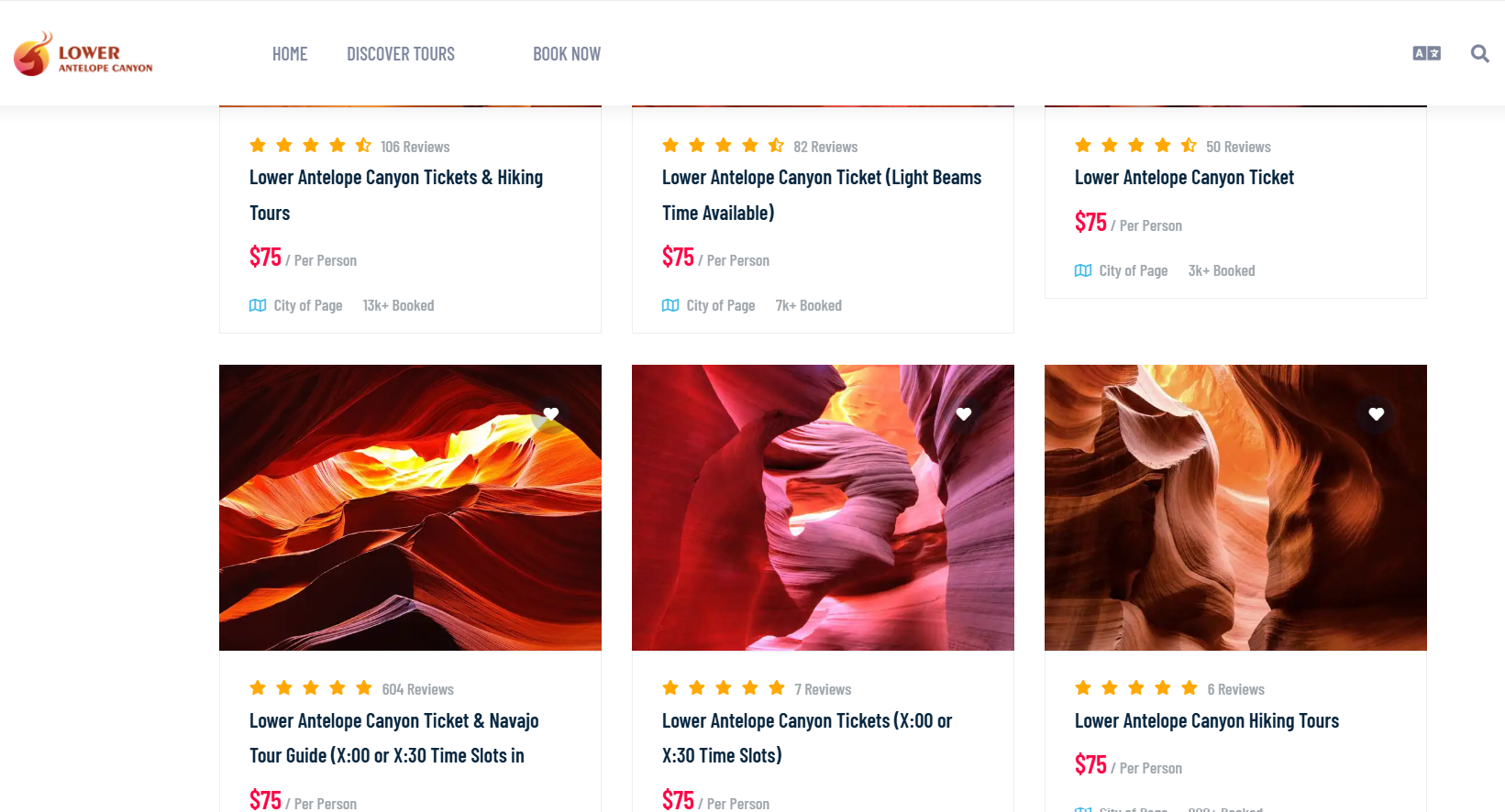 Wij willen de Lower Antelope Tour boeken, maar zie verschillende tickets.