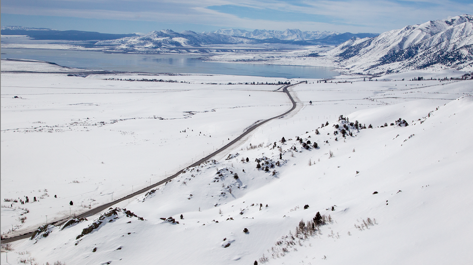 US-395 met op de achtergrond Mono Lake en Lee Vining