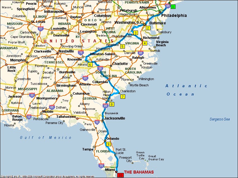 Wij reizen in september 2012 van NYC naar Miami per auto. De eerste 2 plaatsen hebben we redelijk in beeld v.w.b. de activiteiten die we willen doen.