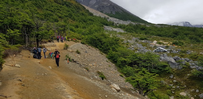 Het is niet heel groot. De hikes zijn gewoon prima trails. Base of the Torres is een aardige klim, maar niets bijzonders qua trail. Het is geen vlak, aangelegd asfalt, maar prima begaanbaar. In het eerste deel van de klim wel wat rotsachtig met losse stenen.