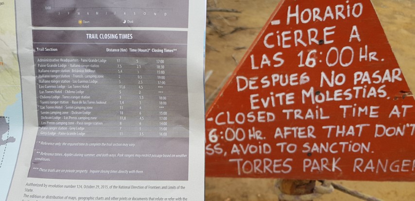 De trailhead voor de Mirador/Base de la Torres del Paine zit rechtsboven, bij de meest noordelijke ingang van het park (in de Y156). Vanaf die ingang volg je dus die weg naar het noorden. Die loopt dood bij de parkeerplaats, een km of 2 voor het hotel en de echte start van de trail. Dat stuk moet je lopen, alleen hotelgasten mogen verder met de auto.