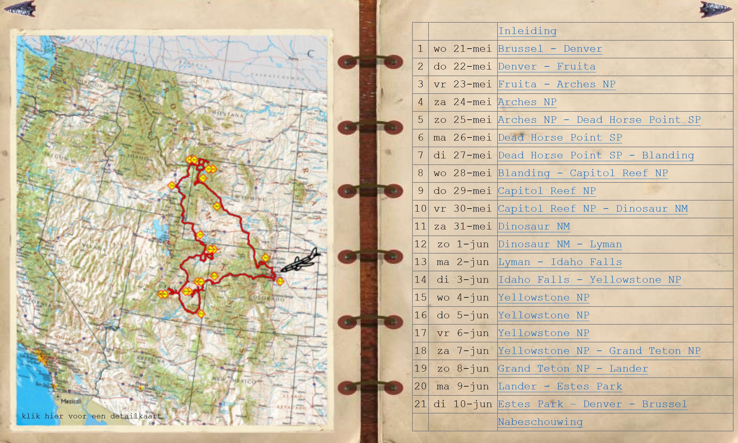 De planning is helemaal klaar en alles is geboekt.Voor de campings zaten we op de seconde klaar en het is allemaal gelukt wat we wilden. Devils Garden in Arches, Wingate in Dead Horse SP en Fruita in Capitol Reef waren snel volgeboekt maar we hebben een plaatsje! Ik ben wel benieuwd hoe druk het overal is in mei/juni. Een timed-entry ticket voor het Bear Lake gedeelte van Rocky Mountains NP is dus niet gelukt. Ik had niet in de gaten dat dat ook zo'n vaart liep. Vanaf 1 mei kon je die boeken, nou gisteren (2 mei) viste ik al achter het net. Ik heb wel tickets voor de rest van het park. We kunnen 's avonds van te voren nog een poging wagen want dan komen er ook nog tickets beschikbaar.