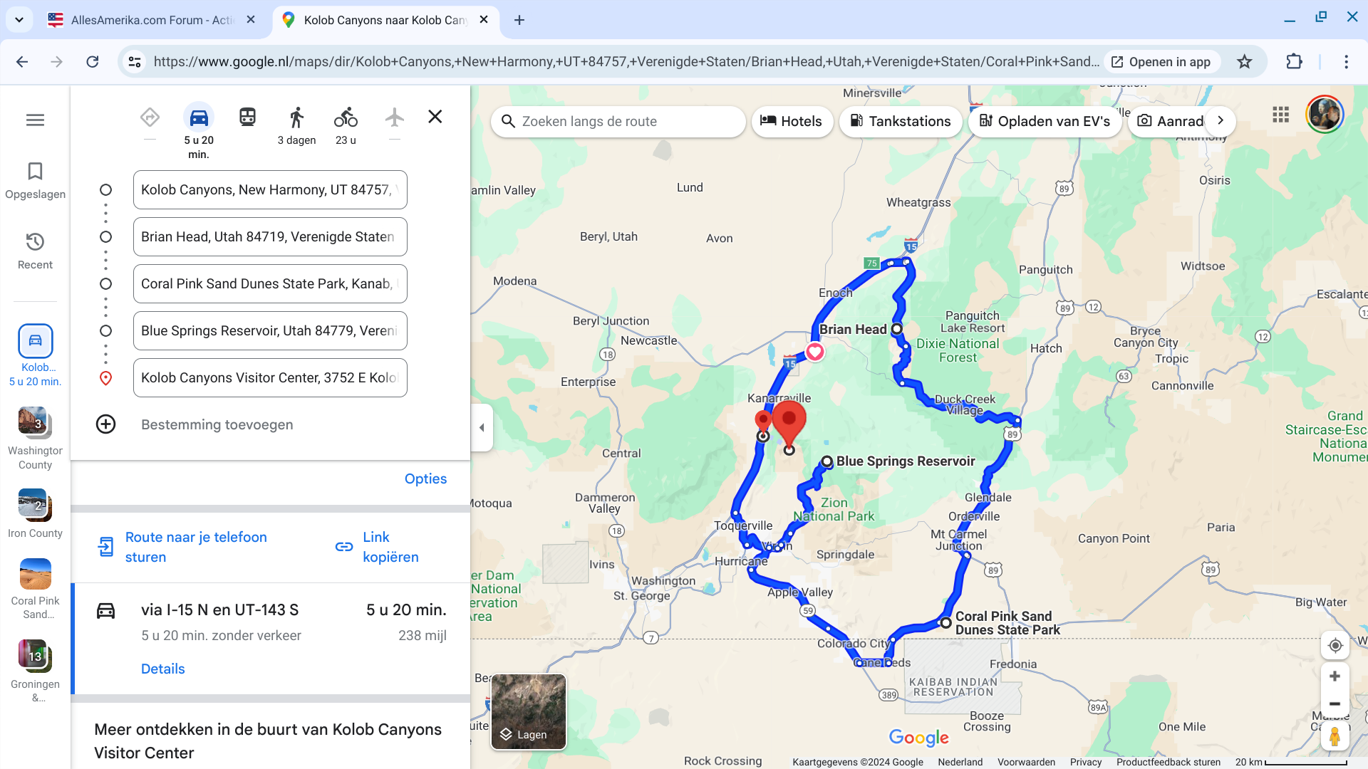 Wat zou je veranderen aan de route dan? Nogmaals heb ik heel snel een route in maps gezet (om de mijlen te bepalen voor de camper) maar ik dacht dat alles op een redelijk logische volgorde zat...