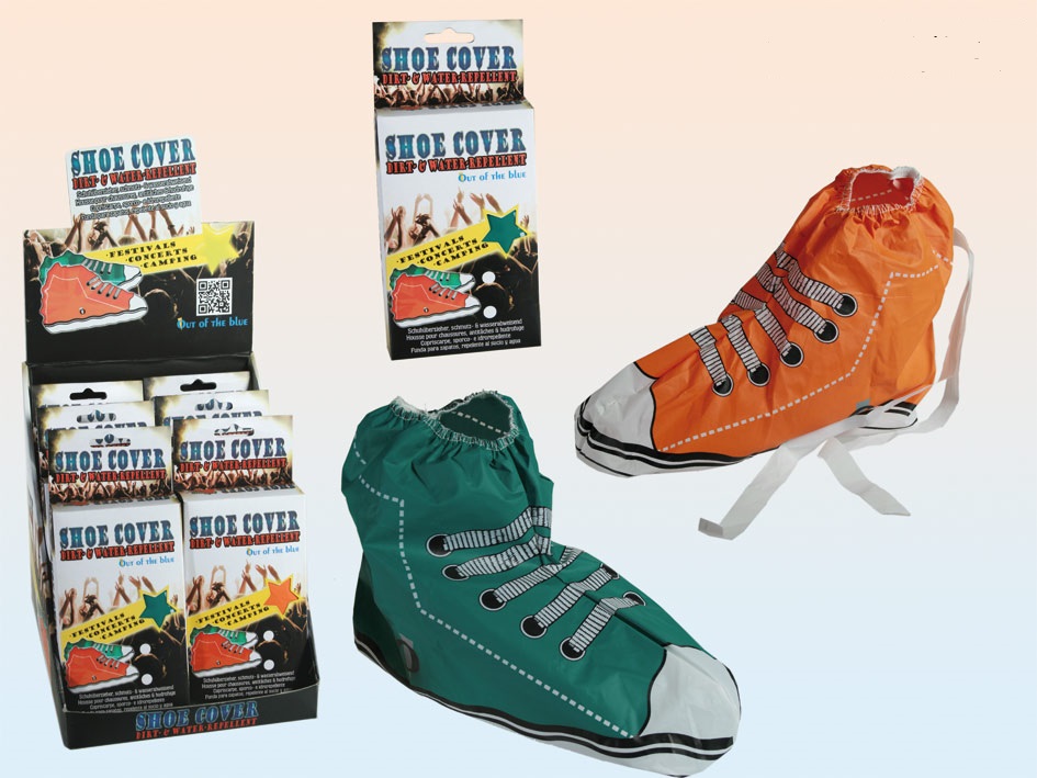 Misschien denk ik te simpel hoor, maar kun je niet gewoon (in een waterdichte plastic zak onder je flatteuze blauwe poncho) een set droge schoenen/sokken meenemen en een handdoekje???