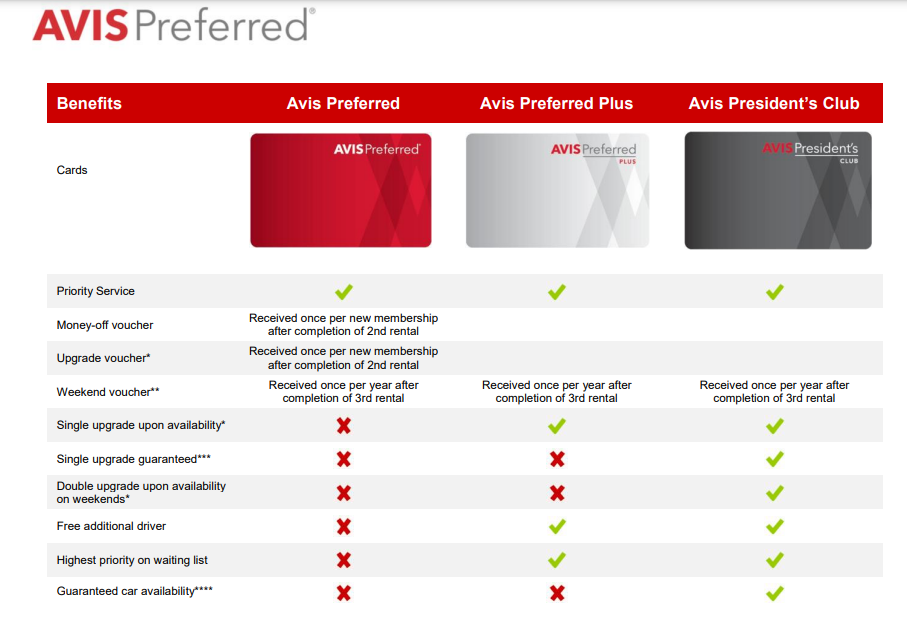 Ik heb Avis President's Club status...klopt het dat ik daar ter plekke dan recht heb op een gratis upgrade naar een klasse hoger dan die Mazda CX5, naar bv een Ford Edge ???