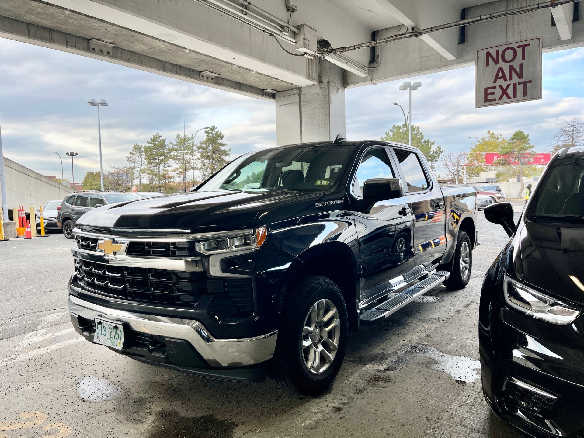 Upgrade genomen (hoeveel ter plaatse bijbetaald/gekregen (gratis)): mocht kiezen uit meerdere pick-ups. Een Colorado of RAM 1500 kon ook, maar de Colorado vond ik te klein en de 1500 te groot (en niet nieuw). Dus maar een Silverado met New Hampshire plates. :)