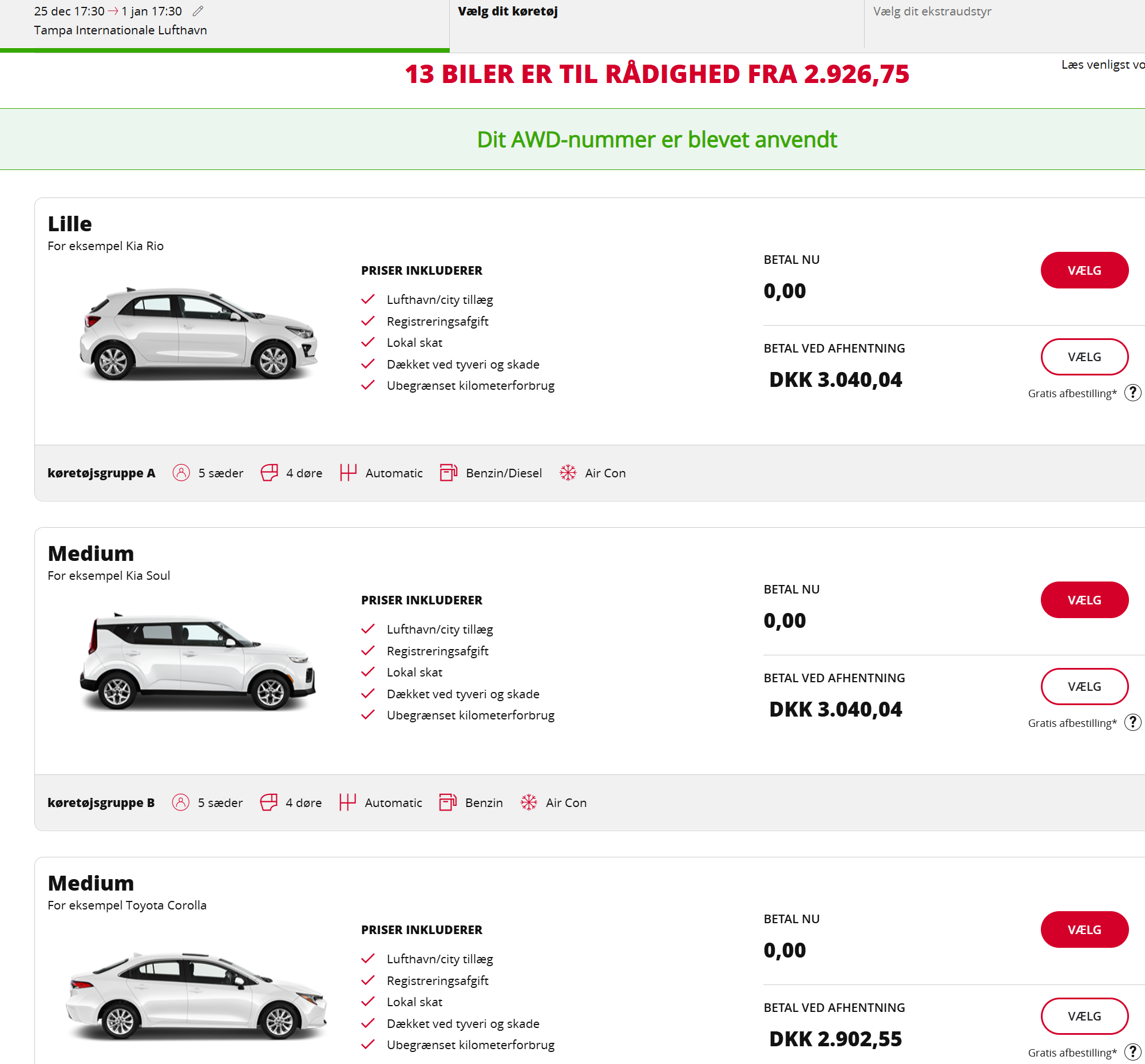 De prijs voor onze huurauto daalt nu per dag lijkt het. Inmiddels een boeking via Avis.is voor $ 495,23 (13 dagen Tampa-Miami) in december code W819200. Dus mocht er nog iemand het voor zijn/haar huur willen checken zeker doen.