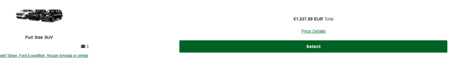 . Bij Alamo een Large Premium SUV (Subarban) voor 731 USD.