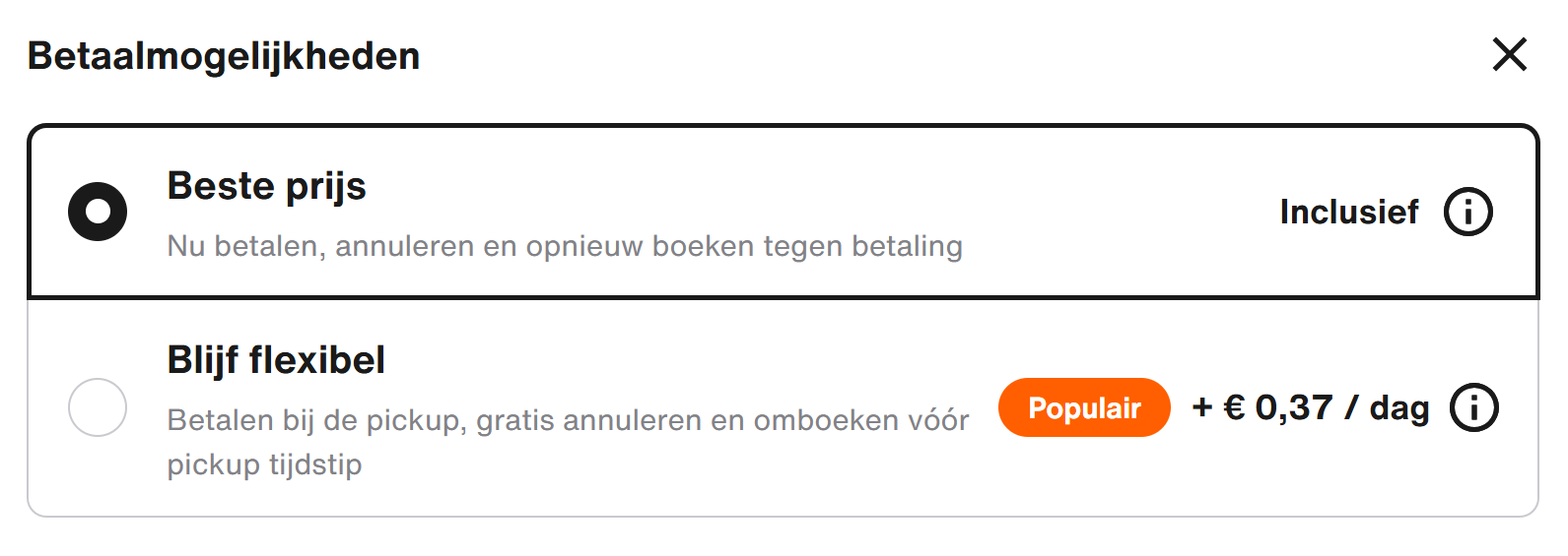 Dat werkt alleen als je bij je reservering "blijf flexibel" kiest (dus Pay-Later optie 2 hieronder)* Als ik straks aankom bij SIxt en mij daar meld en ik krijg toch niet de auto mee die ik wil, hoe kom ik dan af van mijn Sixt reservering zodat ik naar Alamo door kan lopen?